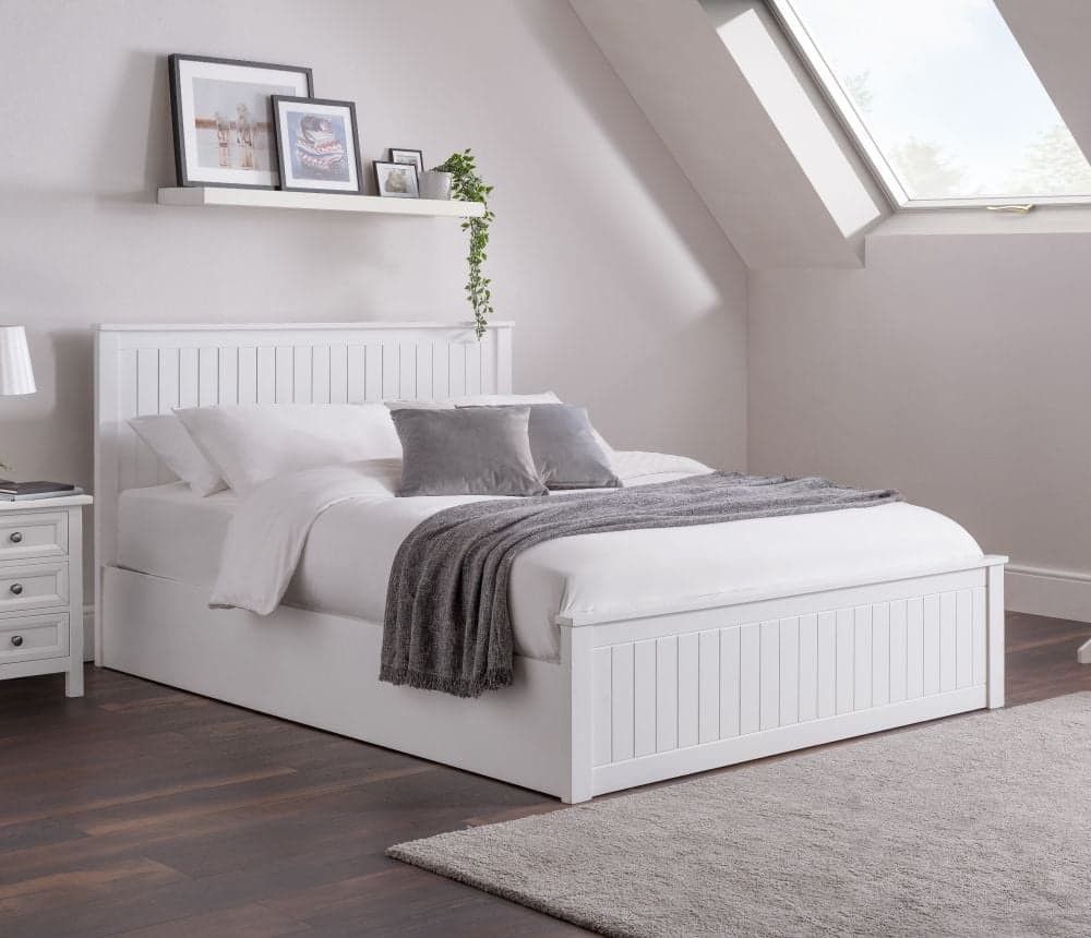 The Maine Ottoman Bed will bring a touch of elegance to your bedroom. With a classic aesthetic, this bed can suit various decorative styles and create a calm, peaceful environment for a good night’s sleep. The ottoman lifts easily and provides a large amount of storage – perfect for bedding and other items.