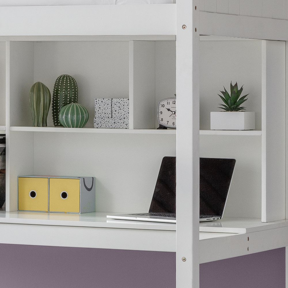 Crafted from Malaysian Hardwood and MDF, the Titan High sleeper is finished in a white lacquer, matching with any bedroom décor as they grow. Offering a classic design with panelled detailing, this high sleeper features a workstation underneath, complete with shelves and room beneath for extra storage.