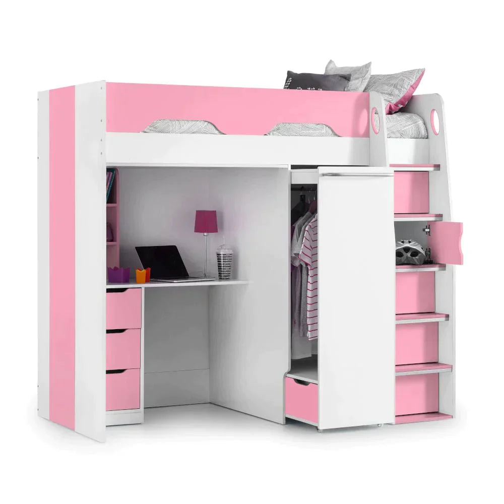 Pegasus High Sleeper (Pink) Wooden Bunk