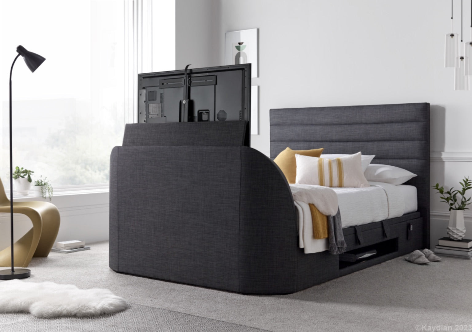 Crafted with meticulous attention to detail, the Lancelot TV Bed boasts a harmonious fusion of sumptuous comfort, cutting-edge technology, and intelligent design. Its plush headend invites you to relax and unwind, while the captivating footend adds a touch of sophistication to your space.