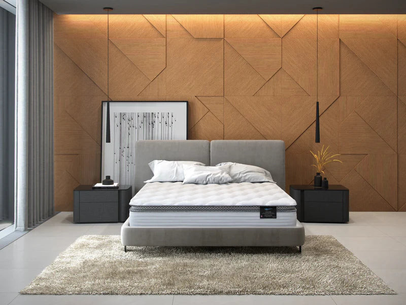 The Kayflex Ozone 3000 Pocket Sprung pillow-top Mattress offers a unique, weightless-like floating sensation thanks to its innovative i-Zone foam, which works in harmony with 3000 pocket springs for exceptional support.